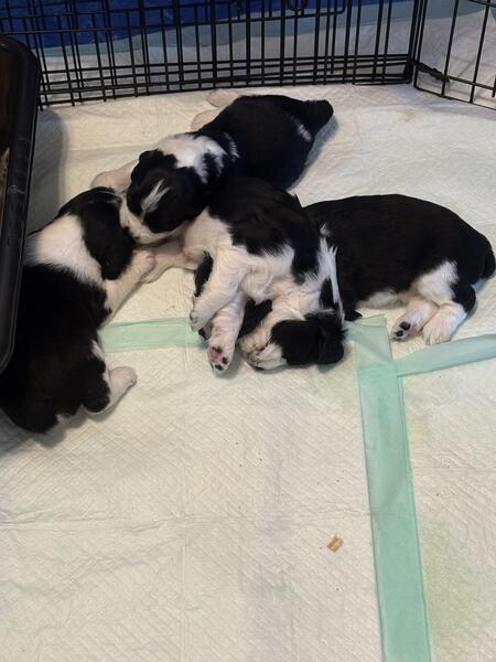 message belinda about this ad AKC registered black & white, tri black and white. Mom and Dad are both on premises, both health tested. Babies come with dewclaws removed, and tails docked. Appropriate puppy shots, wormed, and microchipped. Parents are very smart and loyal. |