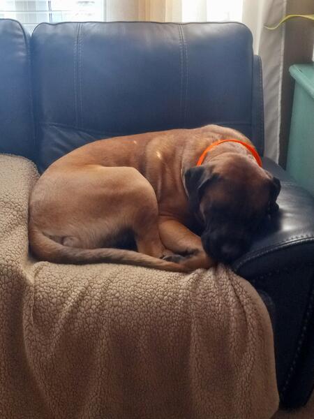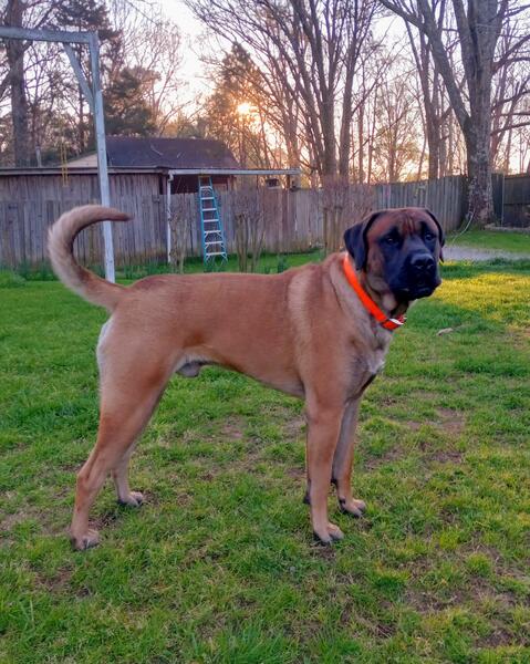 message ambulls about this ad Otis is a 4 year old Male intact dog. A Boxer / Mastiff cross and favors the English Mastiff and weighs approximately 130 lbs. Comes with bite sleeve and tug, with XXL cage. He will go to the door when he needs to go out. Passive on leash and is manageable off leash. He does well around our cat. Good ball drive. Currently inside dogs and lives with 4 adults and 3 pets. May negotiate price for right family home. Hes a good Dog! I have health issues and that is reason for re-homing. For any further detail text 334-316-8885 leave message |
