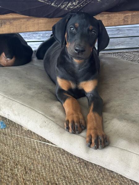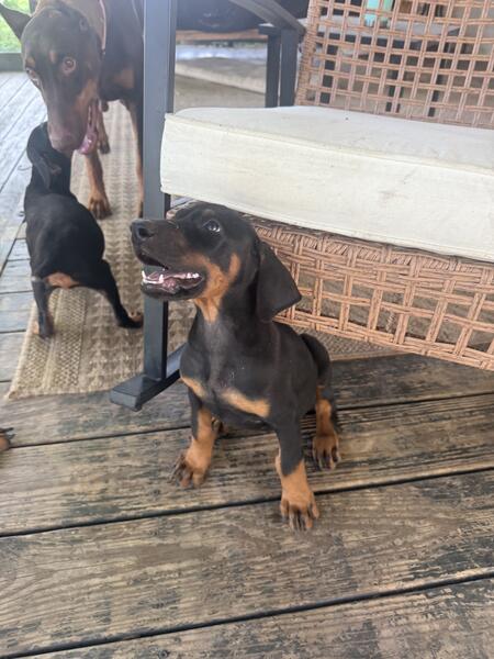 message cmkinslow about this ad Akc Doberman puppies born June 19th. I currently have 2 black females and 1 black male available. Will be ready for their new homes August 14th. Tails and dewclaws done. Will have first vaccine and be dewormed. Taking $200 nonrefundable deposits now to hold until they are ready to go. More than welcome to come see them. Text me for more info! 765-561-5588 |