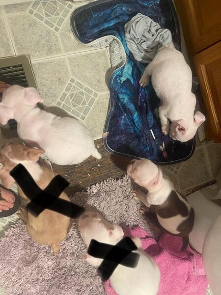 2 female solid white 1 male white and brown 9weeks utd on shots