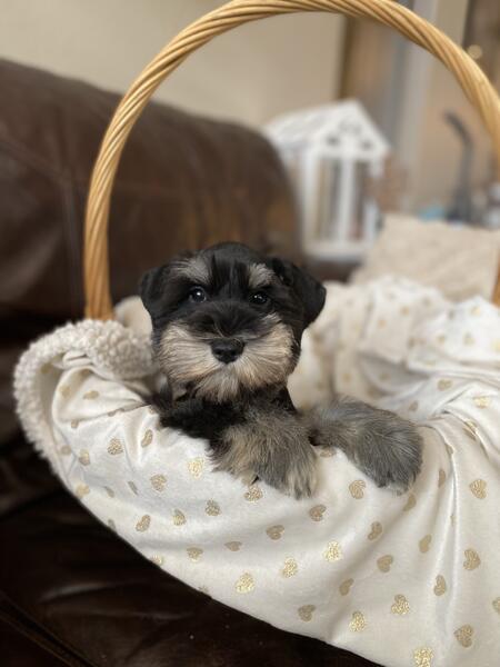 message akcpups about this ad Purebred AKC registered, I have THE prettiest puppies! GREAT temperament and disposition. Our pets are raised in our home with tons of love by us, our kids and our grandkids. They are a huge part of our family. Your new best friend will come with her tail docked, dew claws removed and have a schnauzer cut, and will be utd on puppy shots! SUPER MEGA coats! etc We have had Liver pepper and chocolate, chocolate and tan, Black, Black and Silver, Salt and pepper. Currently available puppies are black and silvers, chocolate and tan and white! These ones are $2200+ New puppies are ready now 480-3 58 4505 One girl is going to be a tiny teacup We are in E Queen Creek, Az Origin: Germany Temperament: Spirited, Alert, Obedient, Friendly, Fearless, Intelligent I do not work outside the home and spend most all of my time with my kids and animals. They will be well socialized with male and female adults, kids, other dogs and held often. We have a smoke free animal loving home! I do not allow anyone to touch the puppies until they are 6 weeks old with their first shots. This is to protect the puppies health! I can however send pictures, plus at around 6 weeks You can come out and play with them. (However Your are welcome to come meet my adult dogs to get a feel for size and temperament) Our Beautiful puppies come with age appropriate vaccines, vitamins, dew claws removed, tail docked, first hair cut, De-Worming. *AKC pet paperwork, solid food and started on kennel training and a starter package and maybe a little pre- spoiled. They all have very nice genetically sound lineages. All puppies are sold as family pet companions. *Show proof of spay/neuter message akcpups about this ad |