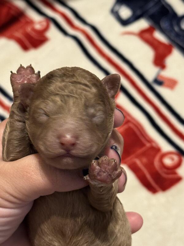 message rjhogart about this ad Chestnut is a beautiful male chocolate Merle toy poodle. He is the biggest of the litter. He loves to be loved on and cuddled. Mom is a blue Merle toy poodle and dad is a chocolate toy poodle. Chestnut will come with full CKC papers, health certificate, dewormed, vaccines up to date, tail docked. Plus our going home puppy pack. Chestnut will be ready for his forever home on 2/2/26. If you are interested in Chestnut please reach out. My name is Jen text me at 239-691-8373, or Russ at 239-410-1989. Please text first. Thank you. |
