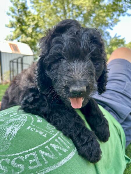 message bagabus about this ad F1b Labradoodle Puppies. First litter. Black males available. Only 2 left! Hypoallergenic. Currently 15 weeks old. Are ready for their forever home with full immunizations and health checks completed. Willing to deliver to MN, SD, IA, WI, northern IL, northern IN and western MI for an extra fee. Great family dog that will be used to people and children. already kennel trained, staying dry all night! Love their walks, know how to sit, working on "stay" and "come" Our dog, the mother, is so great we decided as a family to have puppies! Mother labradoodle is also a great pheasant hunter! Message us for more details |