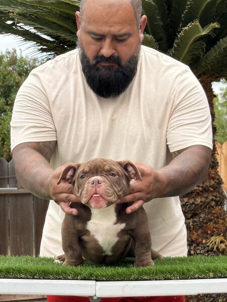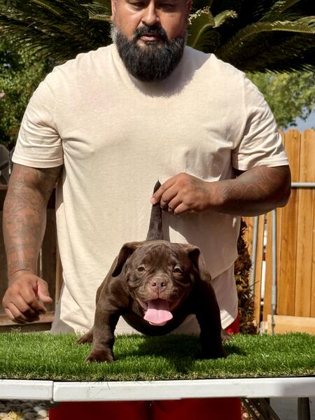 message golloreyes about this ad I have Dexter daughters available ready for great homes fully vaccinated and dewormed pedigree is stacked great bloodline ! These pups have great structure 4 months old great ticket you can text me at (559)598 - 5444 for more information |