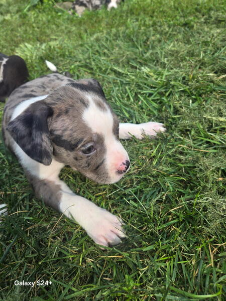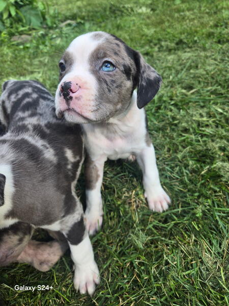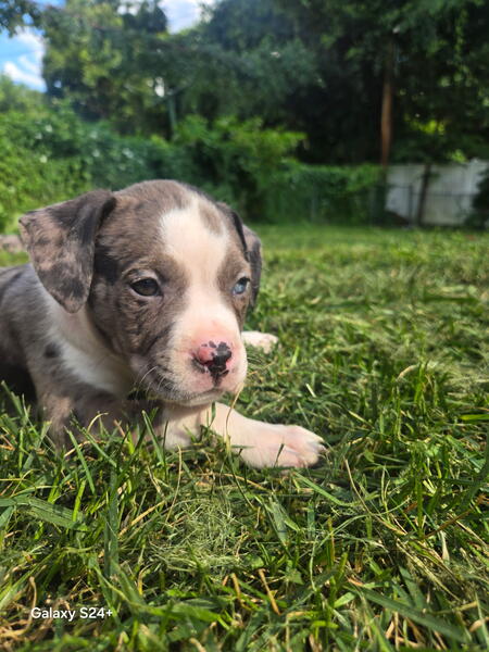 message austingilbraith0118 about this ad He is the last of the litter waiting for his fur-ever home! Mom is a Red/blue Nose Pit Dad is a Blue Merle American Standard Bully He received first round of shots and has been dewormed. He will come with his recent shot records. 500 OBO |