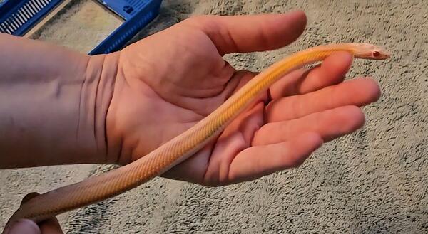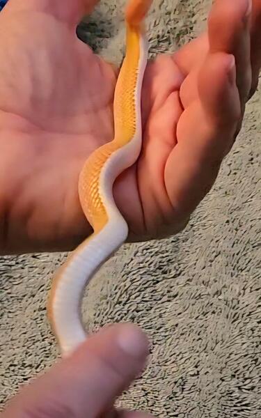 message munchkinjunction about this ad I have a young corn snake available. It's either a salmon snow or a coral snow. Salmon has 1 copy of the red factor gene & coral has 2. This one appears to have 2 copies of the red gene, but I can't guarantee it. Fairly confident it's a female, but I can't guarantee that either. It could be that it's just too young to tell for sure. Quite a personality, active and super cute! Slamming frozen thawed pinky mice every 5-7 days. She actually took 2 this last time, but I wouldn't start doing it regularly yet. She rattles her tail like a rattle snake when she gets excited, especially if it's feeding time. I'm seeing males going for $350. I'm asking $200 with the strong possibility it's a female. |