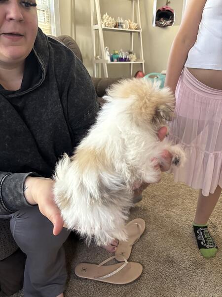 message mgyetvai about this ad 20 week old puppy with all shots. I bought her at a pet store and paid 1700. She has had all her shots and deworming. She is pad trained completely. Very friendly with kids and adults. Has been around cats. I was diagnosed with cancer and can not take care of her. She comes with everything. Cage food toys papers ect. 734-444-8610 |