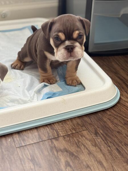 message arbullys about this ad English bulldog puppies born on 3/11. Three females and 1 male left available. All are Tri colored bulldogs , no pied no brindle. We have 1 chocolate male and 1 chocolate female. We also have 2 Lilac females available. |