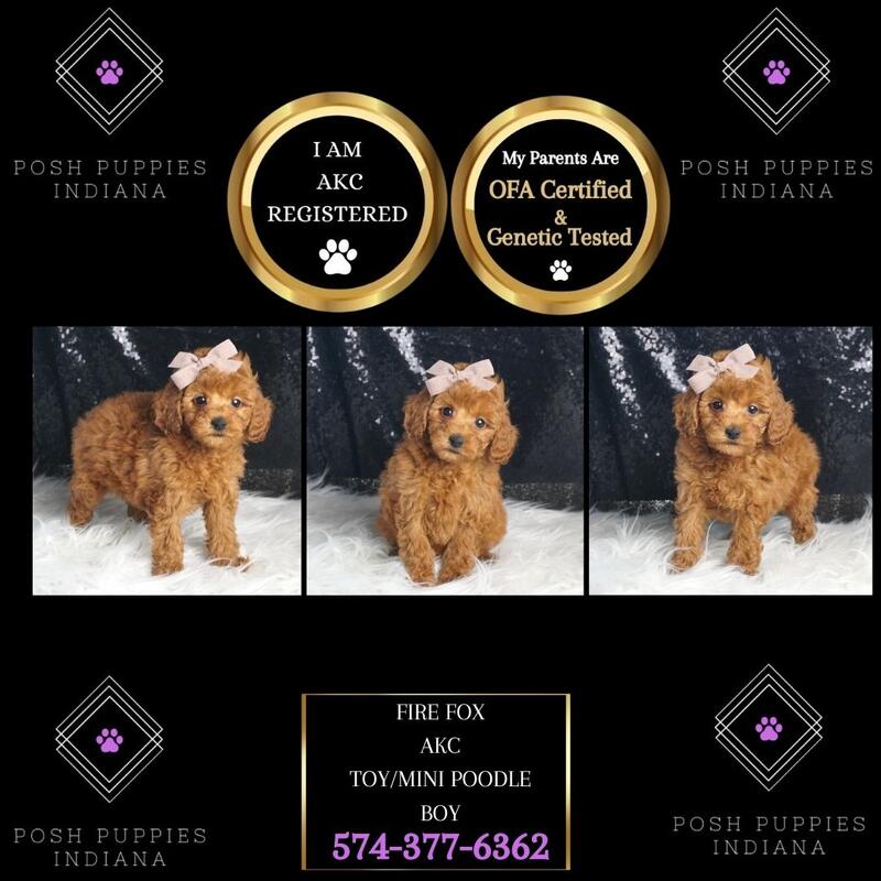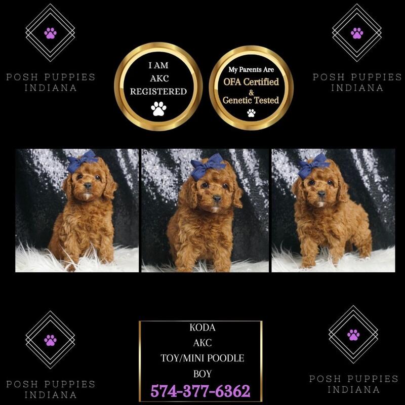 message poshpuppiesindiana about this ad CALL OR TEXT US TODAY 574-377-6362 Are you ready to welcome a bundle of joy into your home Our adorable poodle puppies are ready to steal your heart and bring endless love and laughter into your life! Each puppy is a fluffy bundle of cuteness, with curly coats and playful personalities. Theyre raised in a loving environment, socialized from day one, and come with their first vaccinations and a starter kit to make the transition to your home as smooth as possible. Whether youre looking for a charming companion for your family or a new best friend, our poodles are the ultimate choice. Dont miss out on the chance to bring home one of these precious pupscontact us today to find your perfect furry friend! They are current with their shots and deworming, microchipped, started on puppy pads, come with a one-year health guarantee, and are pre-spoiled! Visit our website at poshpuppiesindiana.com or contact us today at (574)377-6362. Prices starting at $550 and up! message poshpuppiesindiana about this ad |