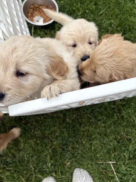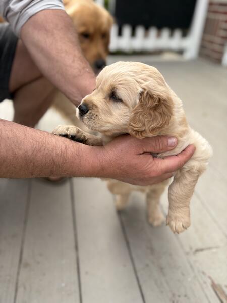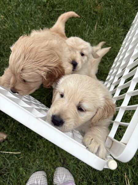message lblrlc5030 about this ad AKC registered Golden Retrievers. Born April 7th Three females will be ready for new homes first week of June. Will have first vet visit and shots. Located in Frankenmuth. Contact Lisa at 989-522-2049 |