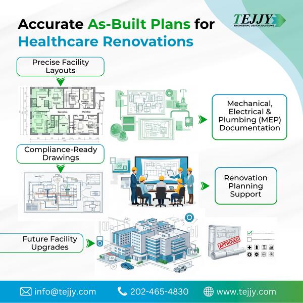 message tejjyinc about this ad Looking for accurate As-Built Plans for healthcare renovation to meet compliance standards? Our detailed documentation ensures every existing condition is precisely captured, reducing errors and delays. With accurate architectural, MEP, and structural updates, we help healthcare facilities renovate smoothly while adhering to strict codes. Why Choose Tejjys As-Built Plans for Healthcare Renovation: Regulatory Compliance Precision Detailing Error & Risk Reduction Seamless Renovation Enhanced Collaboration Future Facility Support Ensure compliance and accuracy in your healthcare renovation with Tejjys expert As-Built Plans. |