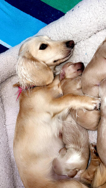 message woodst about this ad Miniature Cream & Cream Pie Dachshund Puppies Males Available! Adorable AKC-registered miniature Dachshund puppies born August 9. These male pups are beautiful cream and cream piebald coats. AKC Registered Raised in a loving home as family pets Healthy, socialized, and handled daily If youre looking for a loyal companion with a sweet temperament and stunning coloring, these boys are perfect for you! Located in Frankfort, Indiana Call or text 7six 5-2four2-7 five 5nine for more info, photos, or to reserve your puppy today! |
