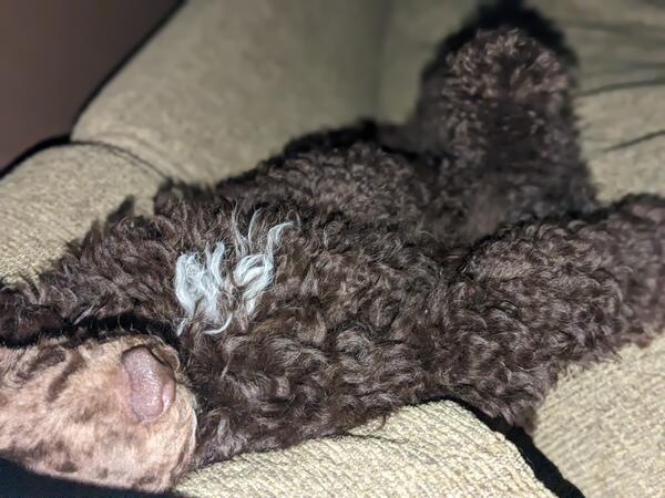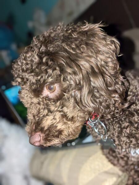 message lladrana about this ad Lil Chocolate Mousse is a chocolate miniature poodle with white spots on his chest and chin and white hairs in a few other spots such as inside his ears. He was born Dec 31 2023 and currently weighs 17lbs. His mother weighs 21lbs and is solid black. His sire weighs 8.5lbs and is a white/apricot parti. Hes very sweet if a bit of a coward. Mousse is currently untested as a stud. He is AKC registered with no known health problems. Im asking a $250 stud fee for him. Depending on the female I *might* accept pick of the litter. |
