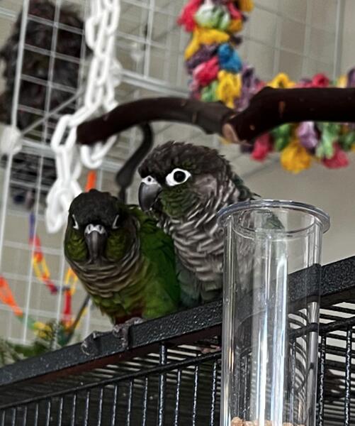 message nwrvrc8390 about this ad For sale: 1 breeding pair, green cheek female and turquoise male. Proven breeders, excellent parents. Will not separate. $600 for the pair. Will come with cage and supplies. 1 Pineapple female, DNA sexed. Unmated. Four years old. Very clever bird. Loves puzzles, human interaction, and play. $500. Will come with cage and supplies. 1 Turquoise juvenile. Sex unknown, two years old. Beautiful baby. A little hand shy but not aggressive and very trainable. $500. |