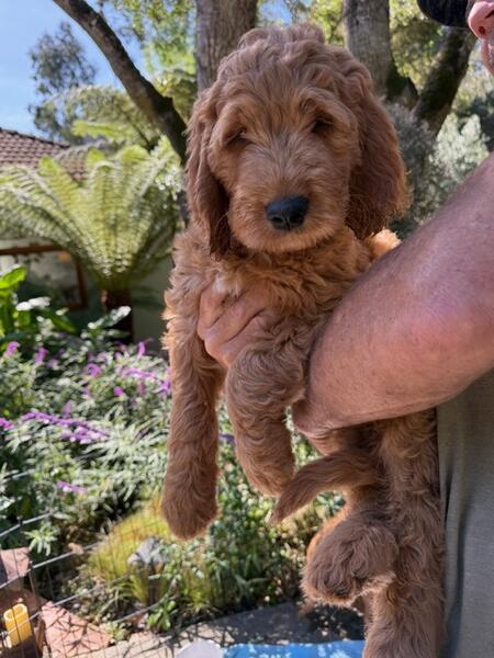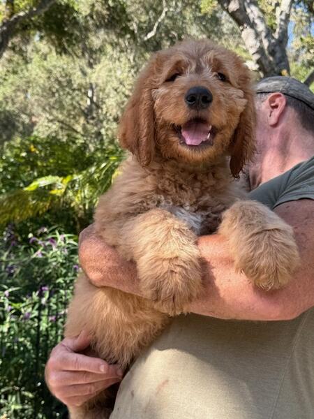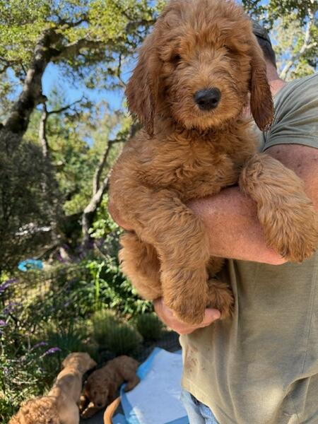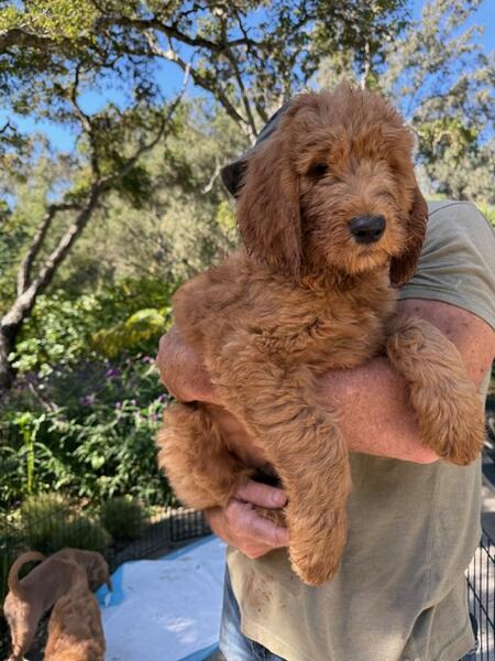 message brandib073 about this ad We have 10 week old goldendoodles ready for their loving, caring forever homes. They just had their vaccines and puppy check ups. We have 6 males and a female left. Some with red coats some with golden apricot coats. All have wavy coats with the exception of one male, he has a straight golden/beige coat. Father is F! and mother is F!b. This was the first and only litter for us. |