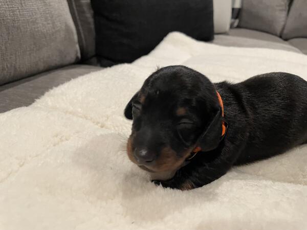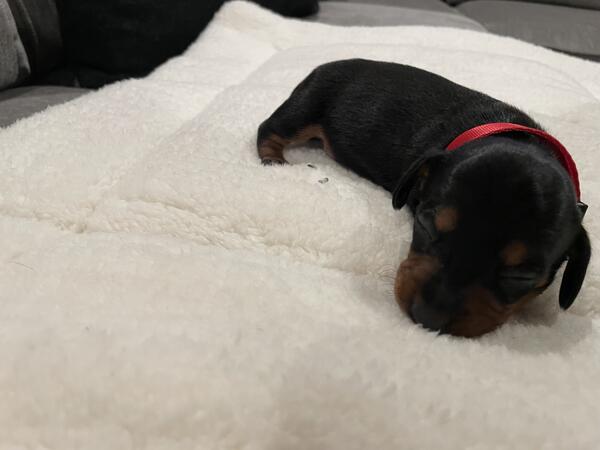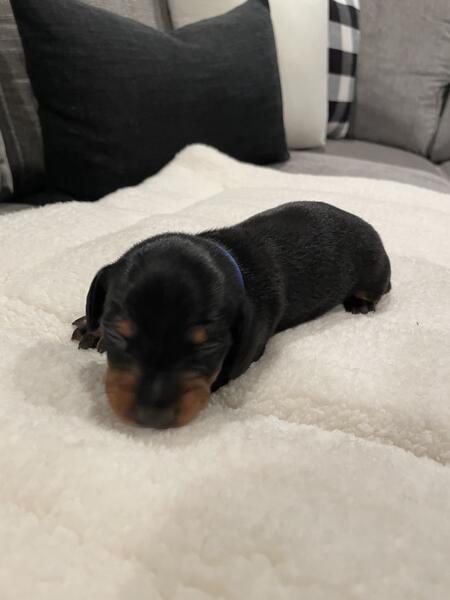 message trrgm5308 about this ad 6 Miniature Dachshund puppies Will be available Feb 1st Will have 1st shots and be on dewormer 4 males 2 females Smooth short hair black and tan Purebred No papers Pick up only Parents on site Text 3604855448 |