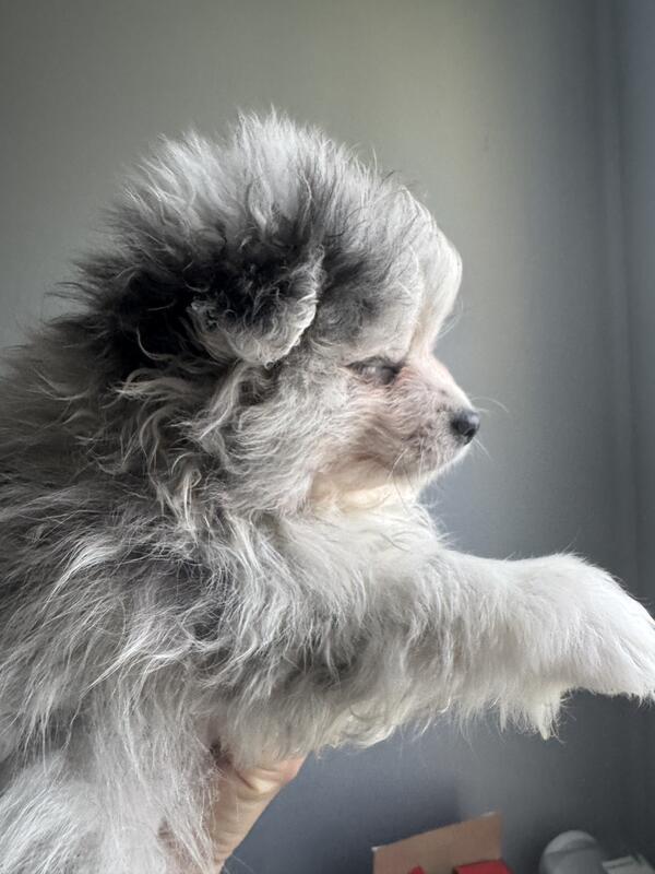 message fluffybb about this ad Nimble intelligent beautiful with tons of pretty attitude ! Fox face pom Super sweet Vocal athletic and parkours walks on leash Great who wants tons of personality Half year old even picks up the leash sometimes when walking with another dog on a double leash wary of strangers until warmed up Half year old AKC BLUE MERLE Marble Gem Pattern Eyes DNA Tested Lines includes 30 days Akc pet insurance Health Guarantee Vaccinated Microchipped Lively Curious Intelligent interactive sweet personality Can meet in person or transport Verifiable program on AKC directory and marketplace Raised in a real loving home free roaming with constant handling and affections All funds directly support animal existence for housing and necessities Ideally this one goes together with the sibling where they love cuddling and hanging out |