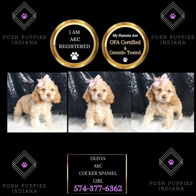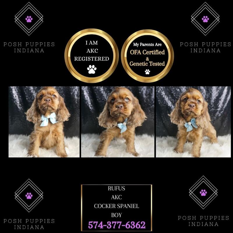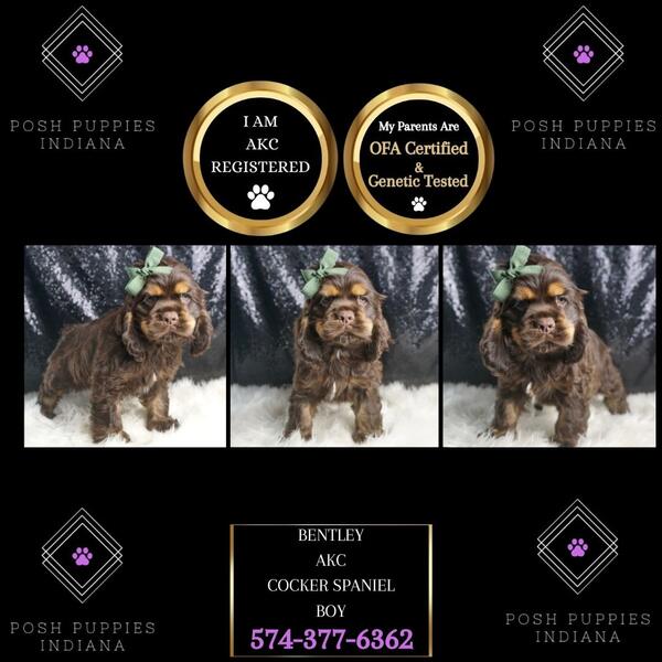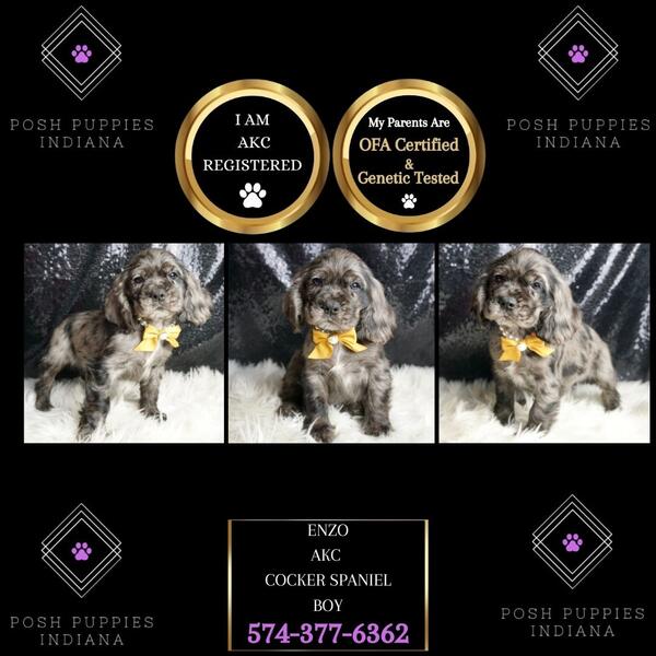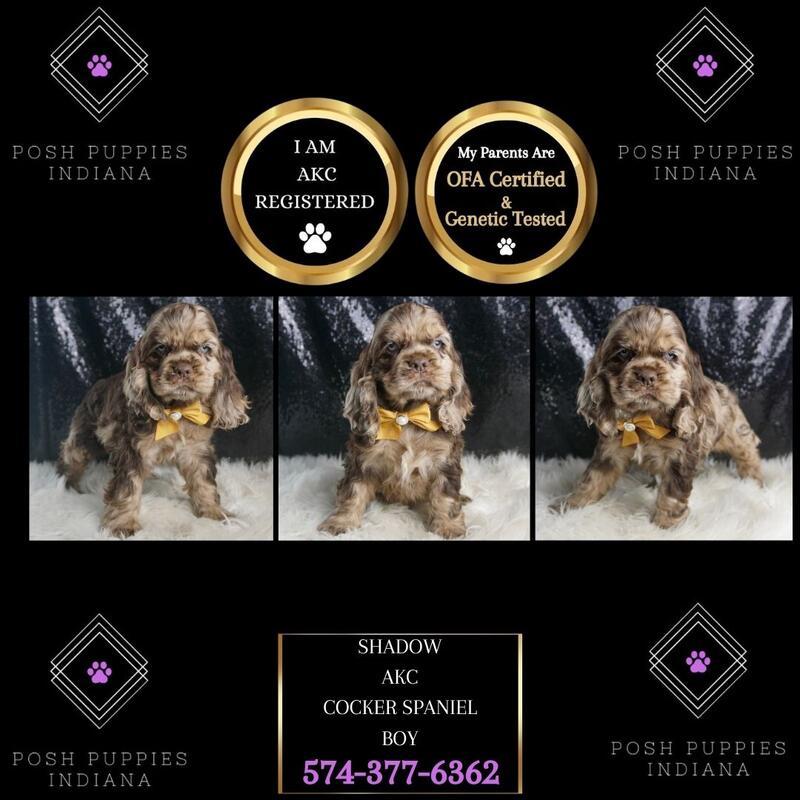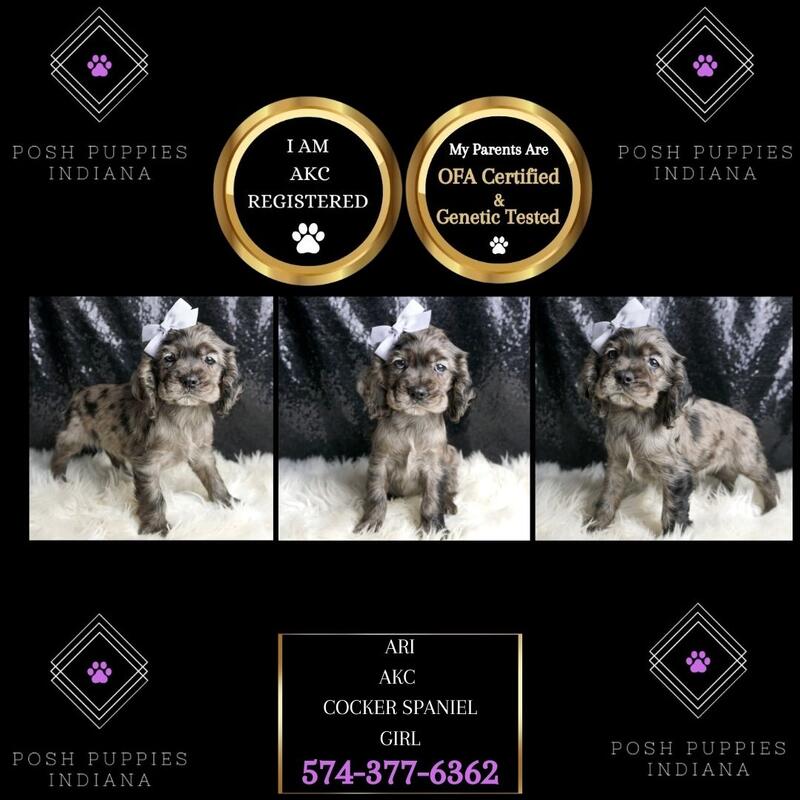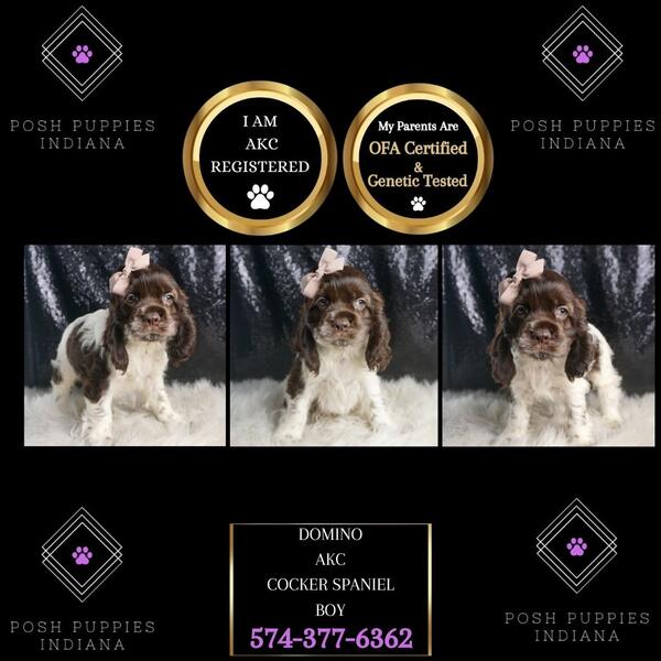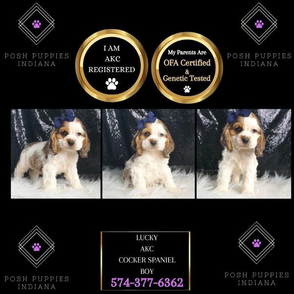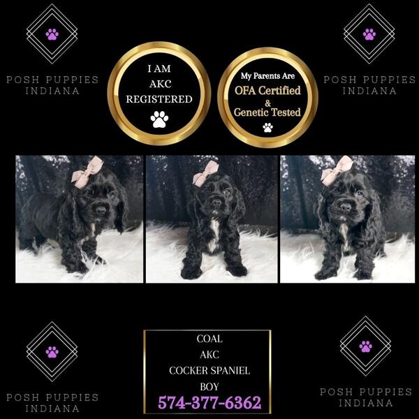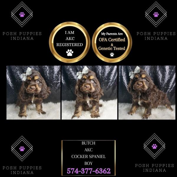 message poshpuppiesindiana about this ad Are You Ready for the Cocker Spaniel Cuteness Explosion? Get ready to have your hearts stolen by the most adorable, irresistible Cocker Spaniel puppies. Imagine coming home to a bundle of silky, soulful-eyed snuggles every single day - its a dream come true! From the moment you lay eyes on their flowing, luxurious coats and playful, friendly demeanors, youll be utterly smitten. Cocker Spaniels are renowned for being the total package - affectionate, intelligent, and endlessly entertaining. These floppy-eared fluff balls will greet you each day with excited tail wags, wet kisses, and a relentless desire for quality cuddle time. They are current with their shots and deworming, microchipped, started on puppy pads, come with a one-year health guarantee, and are pre-spoiled! Visit our website at poshpuppiesindiana.com or contact us today at (574)377-6362. Prices start at $1450 and up! message poshpuppiesindiana about this ad |