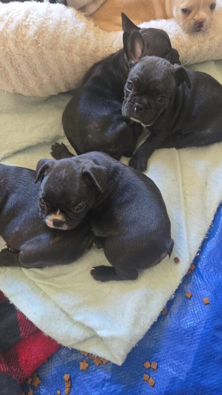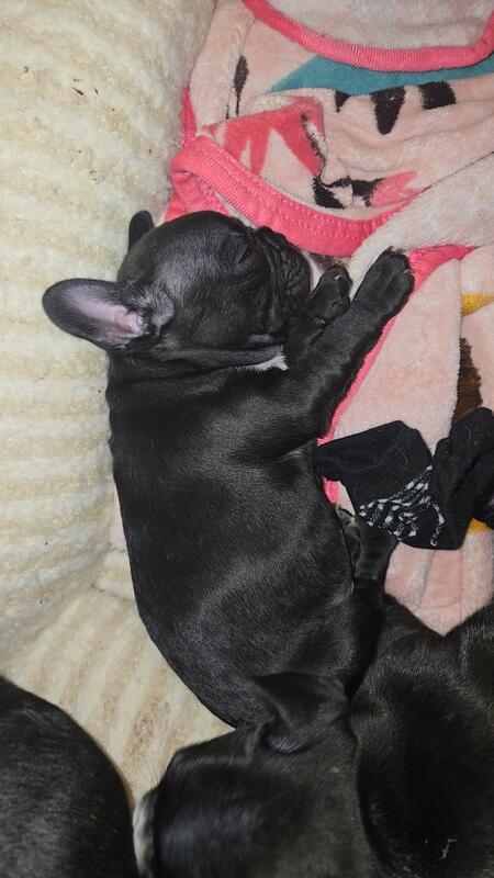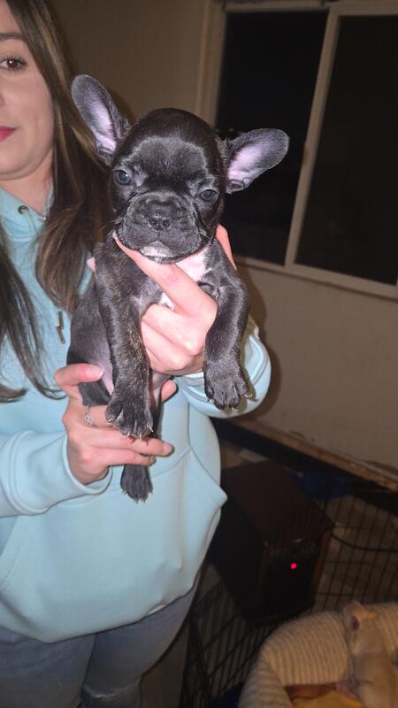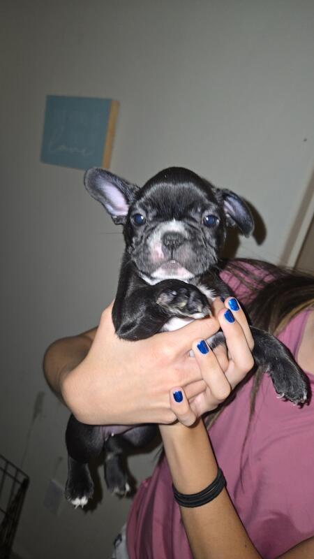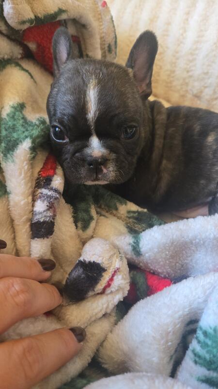 message jrapodaca12 about this ad We have 8 week old French bull dog puppies had first round of shots and vet checks. Moms a blue and dads white with brindle spots. Please reach out it interested. |