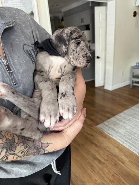 message zhlln2824 about this ad Great Dane puppies expected around December 20th! Mom and dad are both on site. Mom is black ( American ) and dad is (European) blue Merle tan point. Mom has had one previous litter , those pictures will be listed below to get an idea of the markings she has! Please contact me to be added to wait list or if need any other information. Price varies by marking ! |