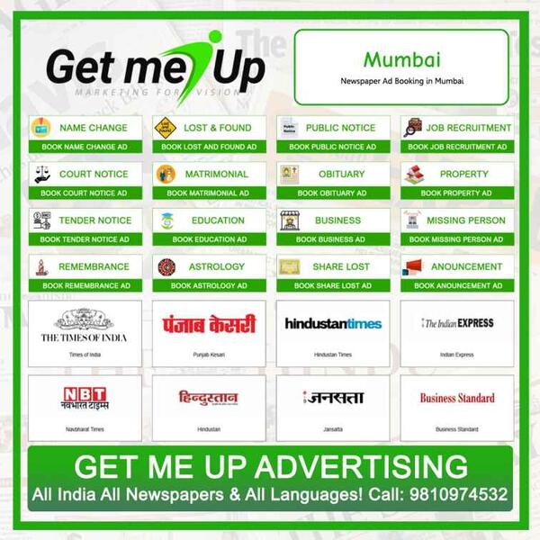 message getmeupadvertising about this ad Looking for a reliable newspaper ad agency in Mumbai? Get Me Up Advertising specializes in providing affordable and efficient ad services across Mumbai's top newspapers. Whether you need classified ads, display ads, or multilingual advertising solutions, we ensure your message reaches the right audience at the right time. Our team simplifies the ad booking process, delivering results with maximum visibility. Get Me Up Advertising is your trusted partner for affordable newspaper ad booking in Mumbai. Reach local or national audiences effortlessly and make your ad campaign a success! Call now 9810974532 to book your newspaper ad today with Get Me Up Advertising your partner in effective and affordable advertising. |