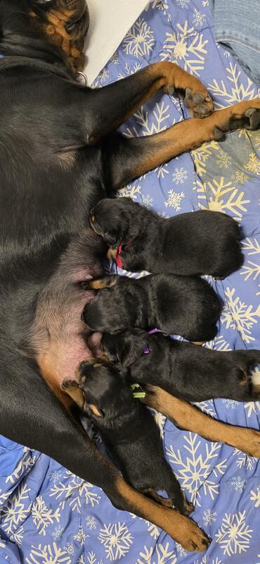 message amberheller98 about this ad Mira and Multi CH Multi V1 rated Joker Vom Hause Demo BH, IGP-1 had their first litter together! His health clearances are - HD/ED 0, OFA EXCELLENT/ Elbows NORMAL, Cardio clear by echo, JLPP Negative. 3 gorgeous girls and 1 handsome boy are available! Pictures are of Joker and Mira and then some of puppies! They are doing great with house breaking and are eating very well! Joker is a Serbian import and Mira is Cahill's granddaughter! |