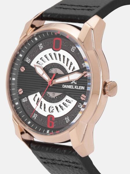 message rohinee about this ad Product Code: 9767351 Display: Analogue Movement: Quartz Power source: Battery Dial style: Textured round stainless steel dial Features: Reset Time, Date Aperture, Glow in the Dark Inlays Strap style: Black regular, leather strap with a tang closure Water resistance: 50 m Warranty: 2 years Warranty provided by brand/manufacturer Comes in a signature Daniel Klein case Dial width: 35 mm Strap Width: 20 mm httpsmyntr.it/wl819N3 |