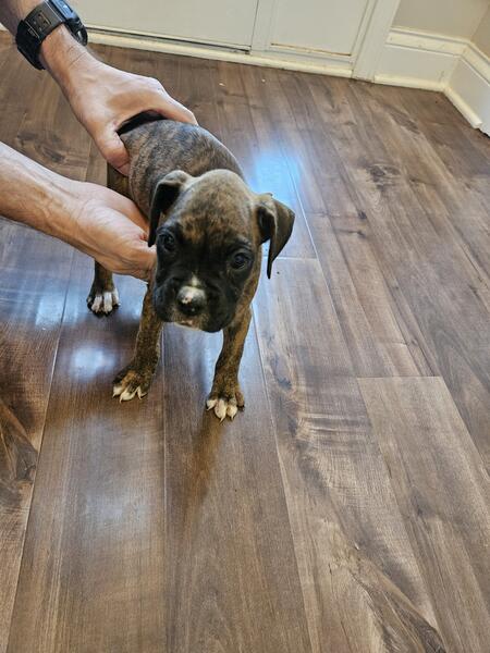 message tiffanyj84 about this ad I have a male and a female boxer puppies, they are 7 weeks old, utd on shots, dewormer dew clawed, tails docked, and come with their akc papers, and a bag of puppy food. |