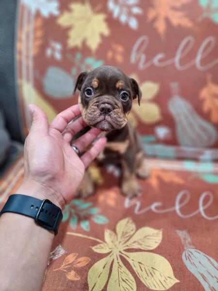 message miguel2009 about this ad Olde English bulldogge puppies chocolate tri lilac . IOEBA registered first set of shots Deworm . Pet price 1,250 full registered available. 2 pups left You can call or text (410) 870-9006 Michael |