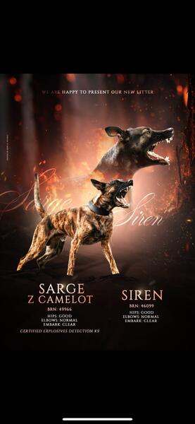 message awal about this ad Dutch shepherd litter, KNPV lines ready to go December 2nd. Parents are OFAd and embarked Sire is a certified narcotics dog, mother was training for sport |