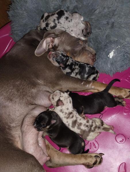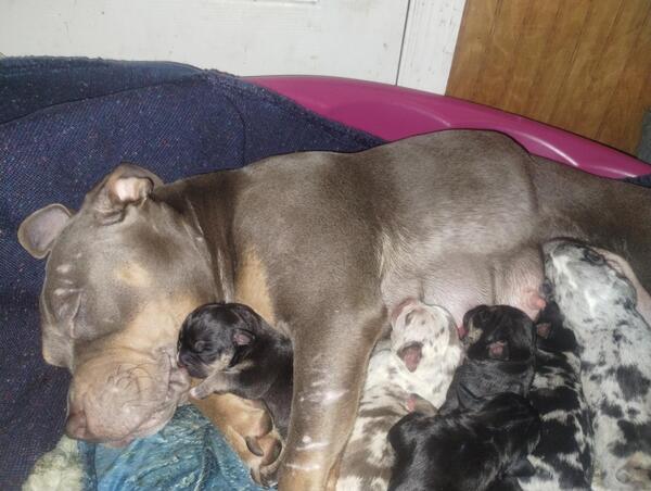message witemike23 about this ad Taking deposits 3 tri Merle females, 3 black and tan tris one may turn blue located in Lexington Kentucky (859)310-8000 pictures of parents below mom is only 10 months old The murals are $1,000 pet homes for $1,800 registered with papersthe tris are $800 pet homes or $1400 registered with papers All shots and dewormer will be done and can crop ears if requested. Be ready to go to their forever home on April 7th |