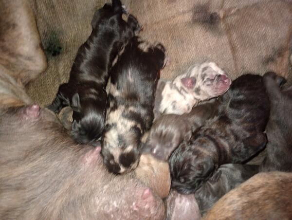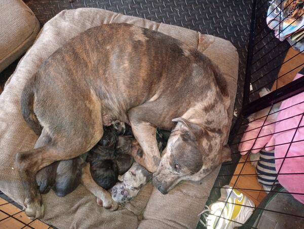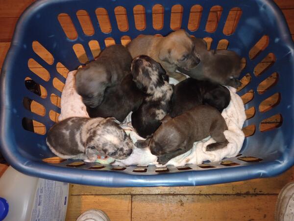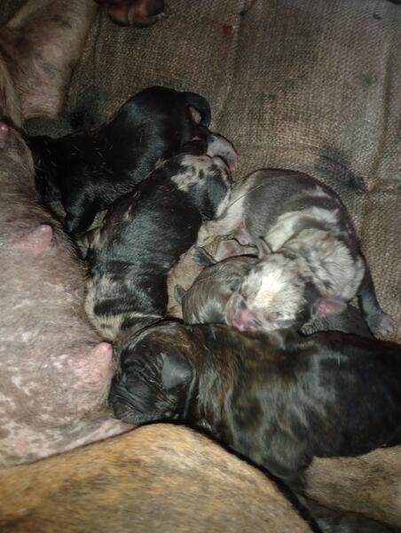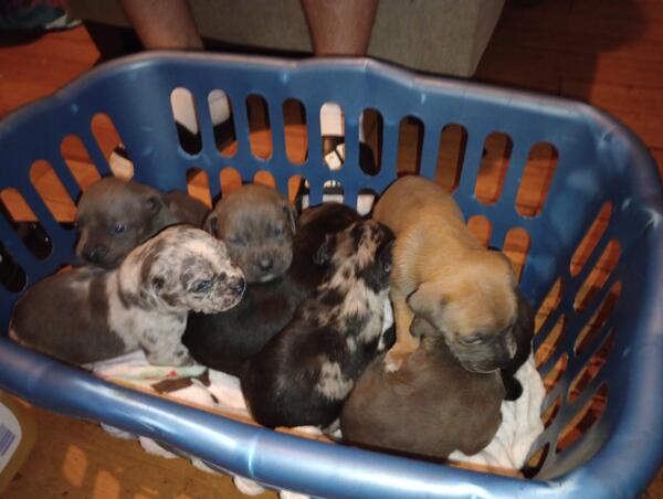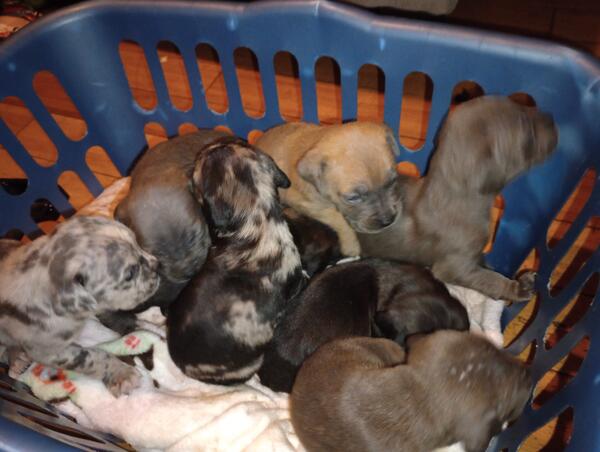 message trnrkd8362 about this ad I have 8 Corso bullys born July 8th will be ready September 2nd all puppys have had tails docked and have been dew clawed I will supply their 6week shots you will be responsible for 8 week shot dad is black brindle Cane Corso with iccf and 8 generation bloodline and mom is a blue brindle spotted merle no papers there is 4boys 4 girls there is 6 sold colors and 2 merles solid colors are 600 and merles are 850 there is a 150 non-refundable deposit and that guarantees the puppy you pick and the remaining price is due at pickup there will be a bill of sale that I will give to each buyer (7659199561) |