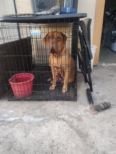 message melvin55 about this ad Almost 10 week old pup 1 male cane corso French mastiff mix this pup will be built like the mother he is current on dewormings and will be getting 2 and puppy shot this week parents are onsite if interested contact Johnny for more pics and info via phone 9415655000 thanks |