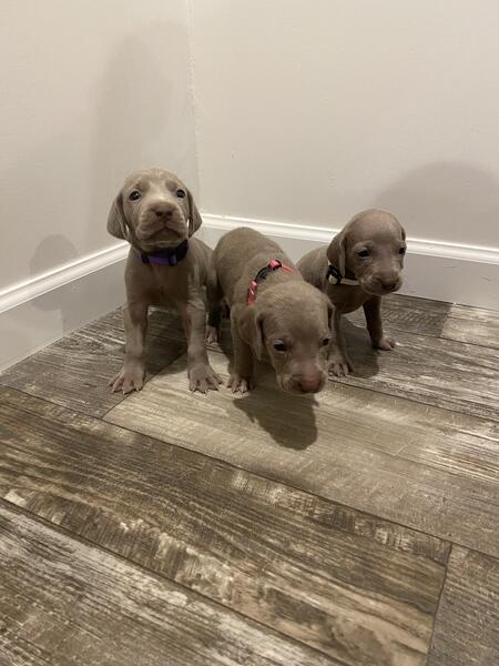 AKC male and female Weimarners ready November 1st. Tails docked and dew claws removed.