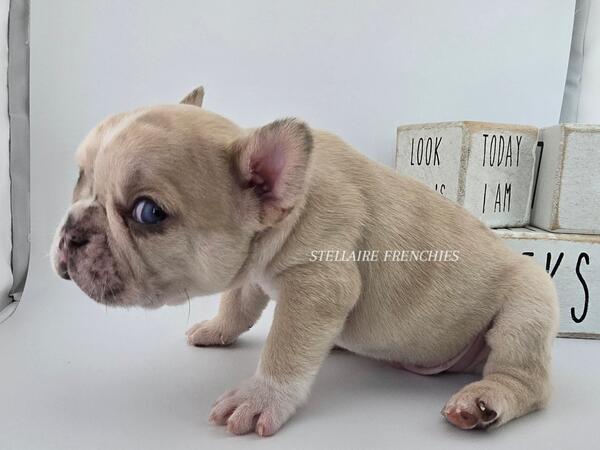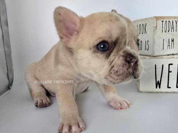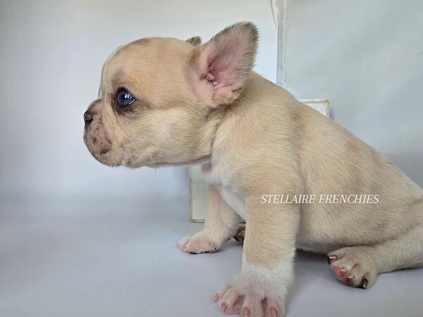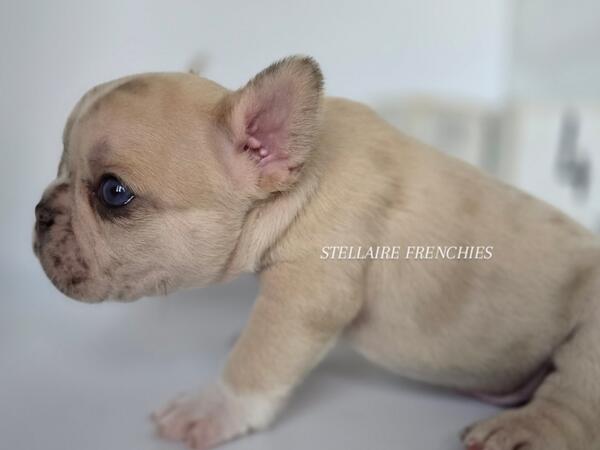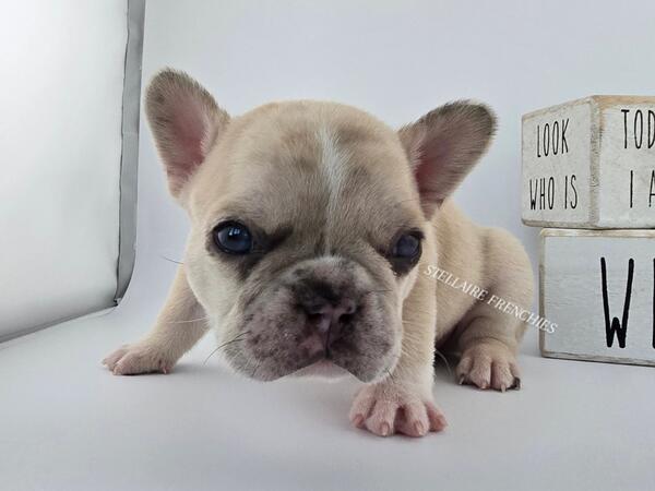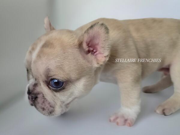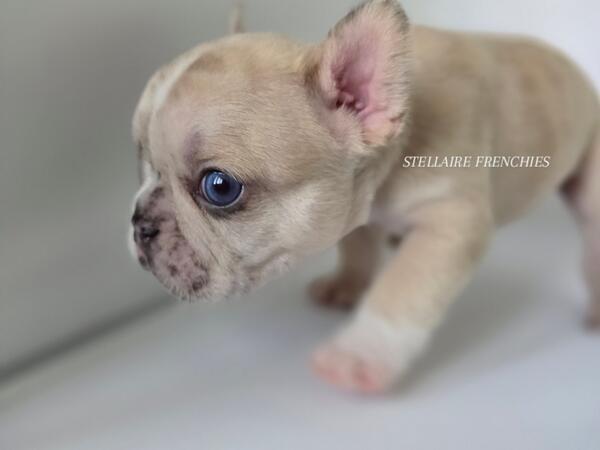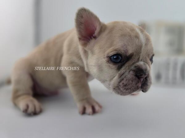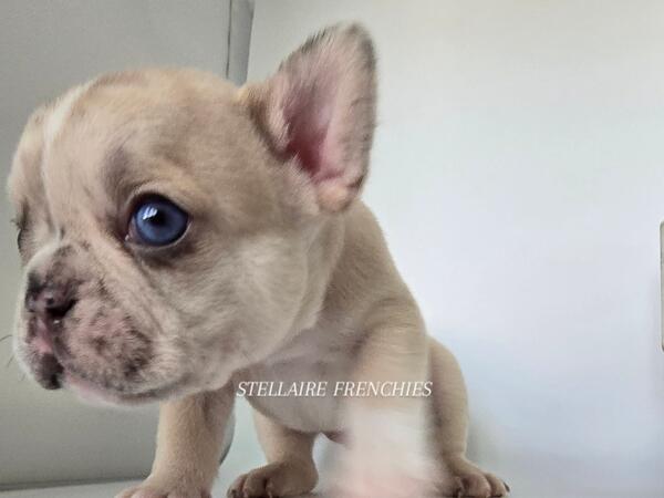 message clckennels about this ad Contact us anytime (909)824-4614 Follow us on IG @stellairefrenchbulldogs We are thrilled to announce the arrival of a stunning litter of puppies born on April 22, 2025! Our beautiful Luna (Cream) was bred to a handsome Black & Tan sire. They have blessed us with 8 healthy, beautiful puppies4 adorable girls and 4 charming boys. About Him: Meet Our Stunning Cream Merle Boy A Rare Beauty with Irresistible Charm This handsome little French Bulldog is a rare Lilac male, a truly exceptional and unique pup with a coat that captivates at first glance. His creamy, velvety fur is gently marbled with soft merle patterning, and his expressive blue eyes shine with curiosity and sweetness. He has the classic Frenchie build compact, muscular, and full of personality. His broad head, short muzzle, and signature bat ears give him an iconic look, while his gentle nature and playful spirit make him a perfect companion for families and individuals alike. Whether hes snuggling in your arms or exploring his surroundings with those tiny, determined paws, this Lilac boy is sure to steal hearts. Raised in a loving, well-socialized environment, hes developing a confident temperament and is already showing signs of being affectionate and eager to bond. Key Features: Color: Lilac (rare and highly sought-after) Eyes: Piercing blue with incredible depth Structure: Compact and correct with a strong stance Temperament: Playful, calm, and affectionate Socialization: Raised around children and other pets This boy is more than just good looks hes bred for health, temperament, and structure. If youre looking to add a Frenchie with both elegance and personality to your home, hes the one. Blue eyes may change Our puppies are raised with the highest standards using Puppy Culture, Avidog, and BABS programs to ensure they are well-socialized and confident companions. Shipping WORLDWIDE (Buyers expense) He will be ready at 8weeks old June 17th. If your interested feel free to reach out anytime. He will come with LIMITED AKC papers, Vet Checks, up to date vaccines, deworming, health Guarantee, and much more. Shipping is available WORLDWIDE message clckennels about this ad |