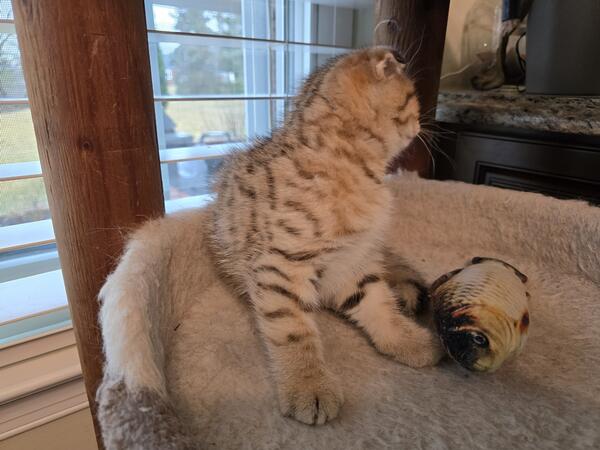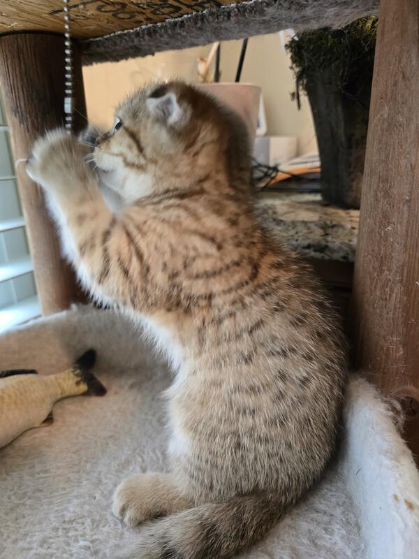 message zvisnadul about this ad .Beautiful Scottish fold boy folded ears for sale. The D.O.B. is January, 15th 2025. He is a very playful and affectionate gray with stripes marble color kitten with thick fluffy soft hair. He was born and raised in a loving home environment. He loves to be around people and will often follow you as if he is a puppy. He is less than two months old and ready to go. He is vaccinated, dewormed and litter trained. Both of his parents are WCF registered. See pictures of the parents also. We have also 1 more girl and 1 boy from the same litter straight, folded ears kittens. The $200 deposit is required to hold the kitten maximum 10 days free of charge to pickup anytime. If you are interested, text or call: 267-939-7901 Zak |