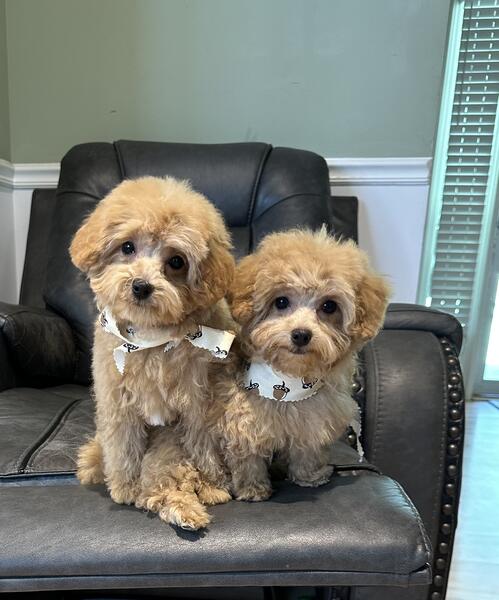 message jcrvrg2155 about this ad Little Cuddles has one girl and one boy available. They are Yorkie Poodles born on April 11, 2025. The boy is $1,000. The girl is $1,200. A non refundable retainer of $250 is required to hold your puppy and is deducted from your total balance. The first set of shots are provided. Please inbox me if youre interested. Serious inquiries only. |