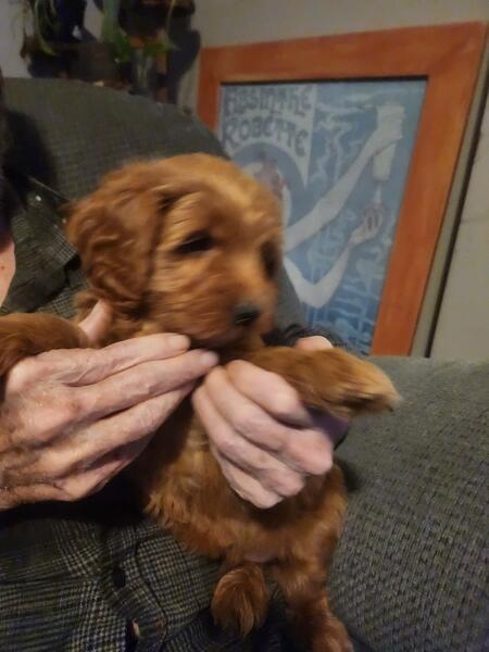 message doddlesgalore about this ad 8 week old female. We call her brass. She is so shiny and perfect. Found out I have cancer. I'm getting very sick. Just needs a loving home. Her mom and dad have been perfect parents. Been a joy and raised right. Naturally. Paper trained. Lots of love by so many. Very well socialized. Pamela 3309685515 |