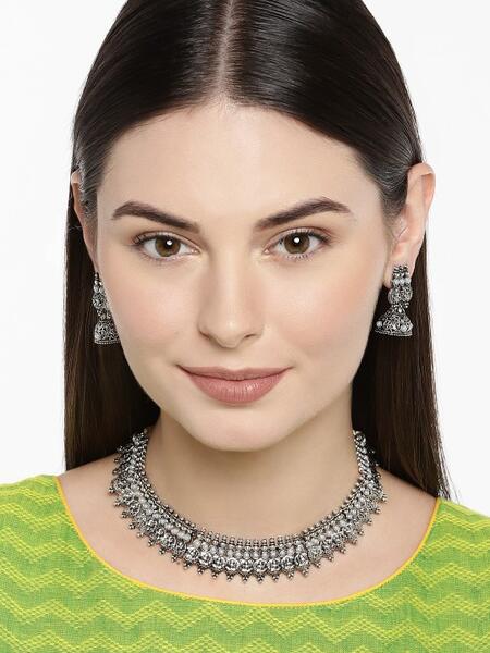 message pritee about this ad Product Highlights Share Deals Get Orders from Friends & Family Earn Money Transfer to Bank Earn Upto 8.5% Profit on all Myntra Transactions Profit will track within 1 hour from the time of transaction Profit will get confirmed within 80 days of transaction Product Code: 7197931 This jewellery set consists of a necklace, and a pair of earrings Silver-toned necklace with stone-studded detailing, secured with a drawstring fastening A pair of matching jhumkas with artificial stones detailing, secured with a post-and-back closure Necklace Length: 10 cm Earring Length: 3.5 cm Incorporate an exquisite addition to your fashion jewellery collection with this jewellery set from Zaveri Pearls. Meticulously designed keeping in mind the current style, this jewellery will add suave sophistication to your persona. Zinc Care Instructions: Wipe your jewellery with a soft cloth after every use Always store your jewellery in a flat box to avoid accidental scratches Keep sprays and perfumes away from your jewellery Do not soak your jewellery in water Clean your jewellery using a soft brush, dipped in jewellery cleaning solution only httpsmyntr.it/GfbgKtv message pritee about this ad |