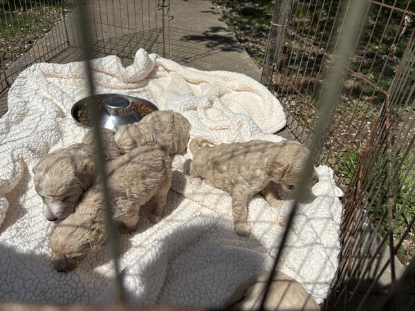 message blasure about this ad 5 males and 1 female Golden Doodle puppies born on born on 3/25/25. They have had first shots and worming. Please call 740-607-2214 and ask for Cheri. |