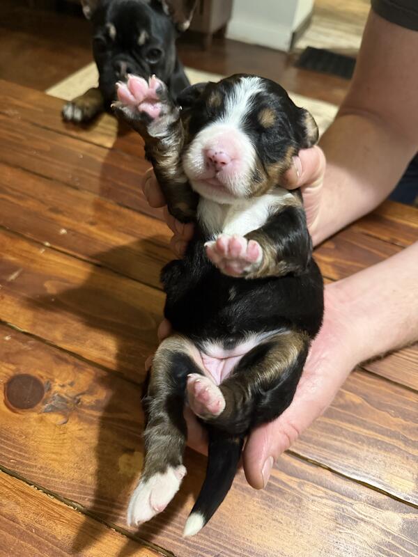 message tiffytaffy07 about this ad We welcomed 4 BEAUTIFUL Bernese Mountain Dog Puppies on 12/21/2025, to the world. Two females and two males. Put a deposit now to claim your puppy. Two puppies are already on hold, 1 female and 1 male. Puppies will be ready to go home at 6-8 weeks old with shot, wormings, and CKC papers. We will post new pics as the puppies grow. If interested in a puppy please text or call me at 1 (231) 872-0645 or email me at If you would like to hold a puppy we do require a deposit which goes towards the total cost of the puppy. Both parents on site as well. Willing to travel to deliver for a trip charge. The puppies will be the last litter for their mom but I will still be breeding Bernese Mountain Dogs if your interested in a future litter. |