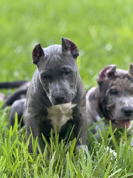 message bigstepperz about this ad Xl bully puppies Health certificates Abkc papers Pups born june 7th Pups are 13 weeks old and ready to go home Ears cropped Bossy kennel blood sunline blood Pups start at 1500 Shipping available 8one3836two303 |