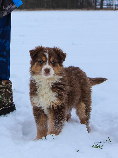 message puppylove08 about this ad Purebred Australian Shepherd! He is about. 1 year old now. He is pre spoiled and loves children! Red Tri with freckles! Snatcher has beautiful Amber eyes and a big beautiful full tail! Very friendly and fiery haha Sometimes takes a minute to warm up to new people. Ready to go now! $350 for Snatcher Aussie Red Tri |