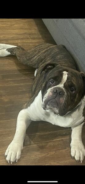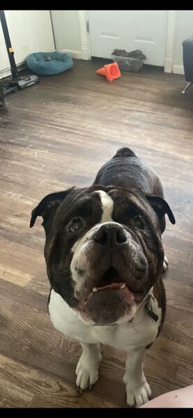 message meganmacintosh2003 about this ad Free olde English bulldog. 100% potty trained as long as you let him outside. Im not sure how he is around kids under the age of 10 hes over 5 yrs old and doesnt do well with other male dogs (he doesnt like to play with them and he likes to be bossy) he is the best dog anyone could ask for. I am rehoming him due to me having too many animals and my living situation isnt the best right now. Please help me find him a good home |