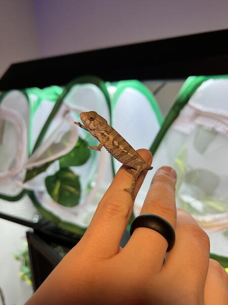 3.5 month old panther chameleon with enclosure. You will need uvb light and heat lights plus decorations.