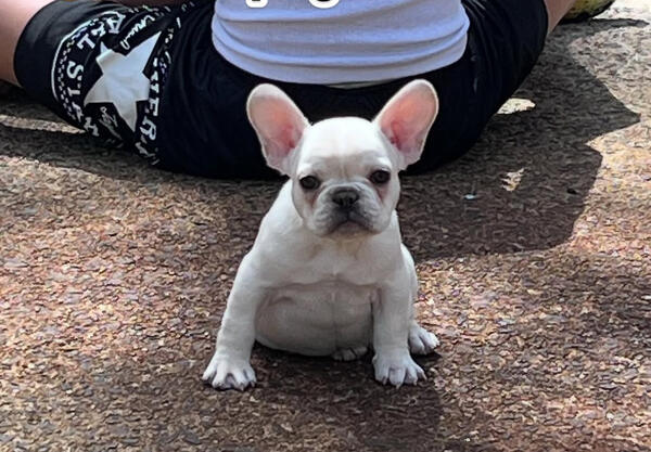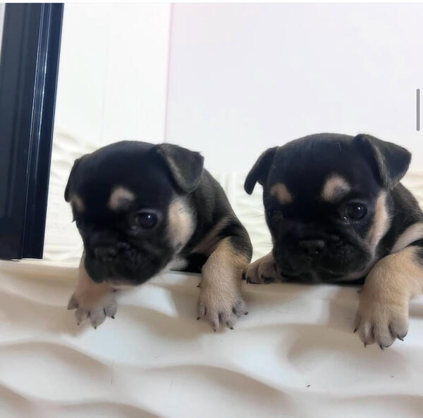 2 female (black) and 2 male frenchies (white) for sale akc paper work 4 months old first set of shots