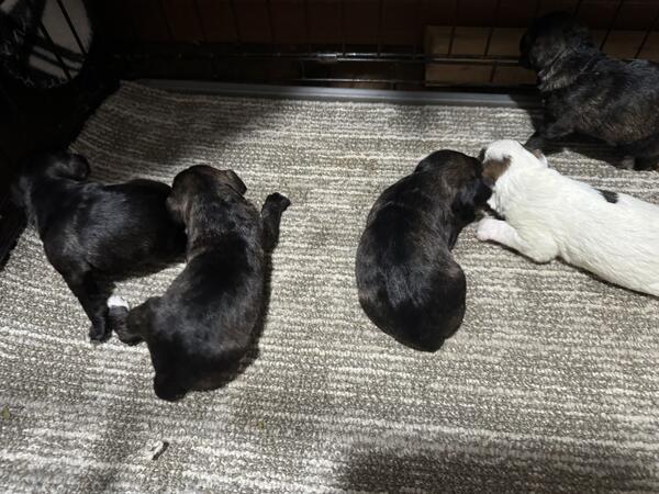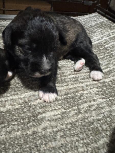 message ddbbee about this ad We have 6 Schnoodle puppies that will be ready for their new homes around the middle of March 2025. They will come with their first puppy shot, be up-to-date on worming and well on their way to being potty trained. We use a doggy door that gives them a head start on going outside to potty. We have 2 females that are black but we can tell they will lighten up because of the color coming in underneath. We have a white male with gorgeous markings, some black & brown coloring on him. The other males are black/brownish but will also lighten up a lot. The puppies have been around kids from day one. The mom is a 12lb mini schnauzer we raised from our own line. We owned & raised her parents and grandparents on both sides. She comes from a very long line of awesome schnauzers. She has a sweet disposition and loves adults and kids, one of our best. The dad is a sweet black poodle, about 13 lbs. these puppies should stay in the 12-13lbs range. Schnoodles are great family dogs, love attention and are very smart. They love to play but also love downtime on your lap. Schnoodles are hypoallergenic, neither the schnauzer nor the poodle shed, great for people with allergies. Message with any questions. We do have a Face book page where you can see our past puppies and talk to anyone that has puppies from our previous litters. We do accept PayPal or Venmo for deposits. Last picture is from a previous litter to show how they possibly will lighten up. message ddbbee about this ad |