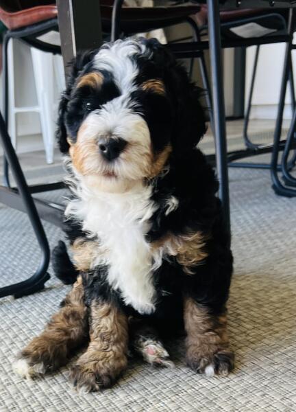 message jper1321 about this ad Beautiful and Healthy Standard Bernedoodles, Tri-colored markings! Home raised with love and socialized with other dogs and kids. Will be ready for their new home soon. Parents embark health tested. Puppies will come with full vet records and care package. Text Eight One Zero-Five Three Three-Five Two Two Three. |