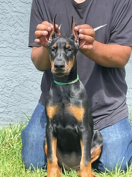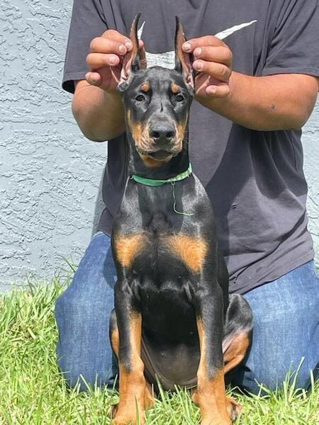 message elitedoberman about this ad European Doberman puppies AKC Registered Doberman Comes with Vet check and Health certificate plus Shot record and all Vaccines up to date and Dewormed plus Dew claws removed and Tails Docked. Ear cropped Starting at 2750.00 and up. |