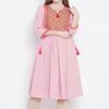 message rohinee about this ad Product Code: 10297751 Blue printed A-line kurta, has a round neck, three-quarter sleeves, and flared hem, tie-up detailing on the waist This fusion Kurta can also be styled as a Dress The model (height 5'8 is wearing a size S This swanky kurta from Anouk will take your personal style to new heights. For your next dinner party or family gathering, this blue piece pairs well with dark leggings and chic flats. 100% viscose Machine-wash httpsmyntr.it/QwS1UoJ |